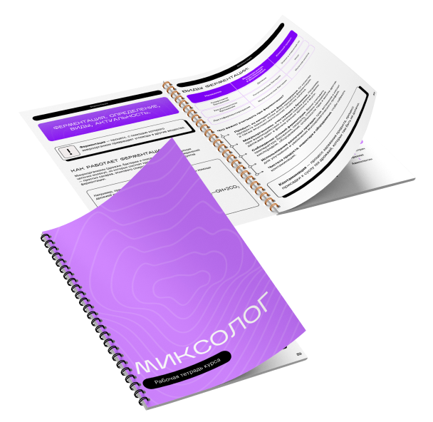 Рабочая тетрадь курса Миксолог дополняет и улучшает восприятие и усвоение материалов обучения. Внутри — ты найдешь всю необходимую информацию, мотивацию и вдохновение для создания уникальных авторских напитков и востребованных коктейльных карт.